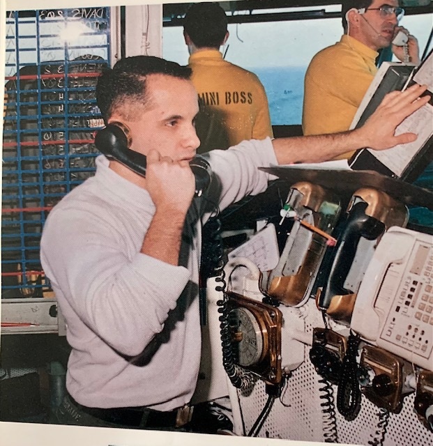 Yours truly on duty in Primary Flight Control on board USS Saratoga CV-60 in the Mediterranean Sea 1994. Official U.S. Navy photo.