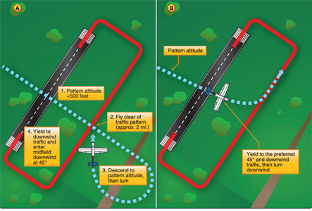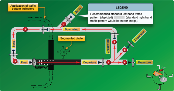 Airport traffic patterns are developed to ensure that air traffic is flown into and out of an airport safely. Each airport traffic pattern is established based on the local conditions, including the direction and placement of the pattern, the altitude at which it is to be flown and the procedures for entering and exiting the pattern. It is imperative that pilots are taught correct traffic pattern procedures and exercise constant vigilance in the vicinity of airports when entering and exiting the traffic pattern. Information regarding the procedures for a specific airport can be found in the chart supplements. Additional information on airport operations and traffic patterns can be found in the Aeronautical Information Manual (AIM). FAA-PHAK